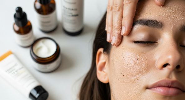 - Recommencez des peelings doux : une fois la routine solaire allégée, réintégrez un exfoliant doux type acide lactique, PHA, pour lisser le grain et atténuer les taches.